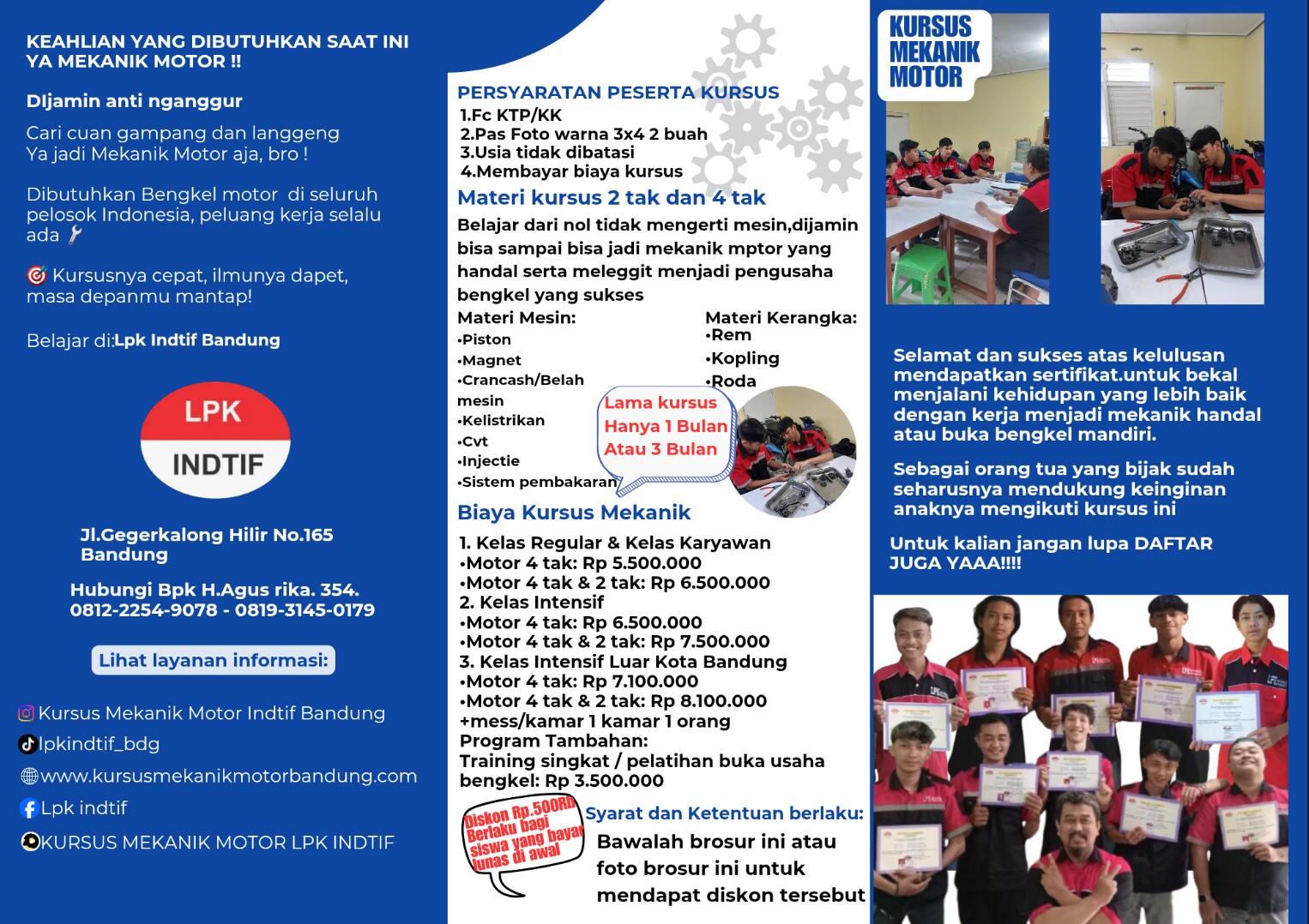 Daftar Kursus Mekanik Motor DI -LPK INDIF Bandung.